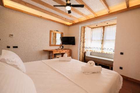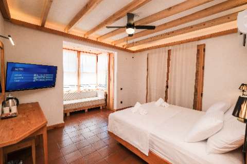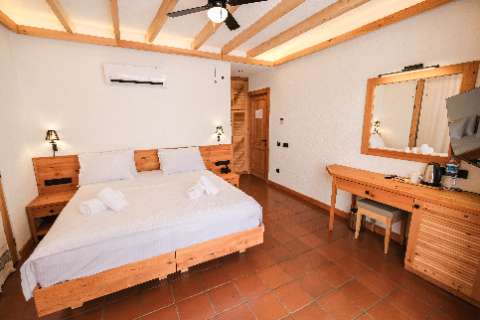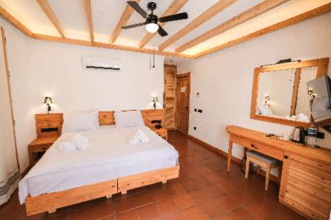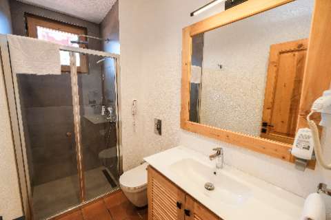 Our room, with its warm and welcoming atmosphere, features a simple and modern design that prioritizes your comfort. Decorated with cedar wood details, it includes a spacious and comfortable double bed or two single beds.