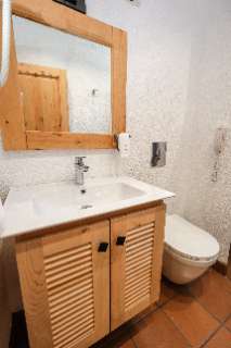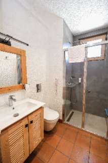 Natural terracotta flooring ensures a hygienic and easy-to-clean surface, enhancing comfort, while the wooden-beamed ceiling adds a rustic charm.