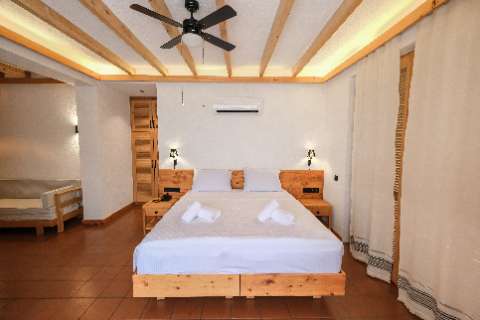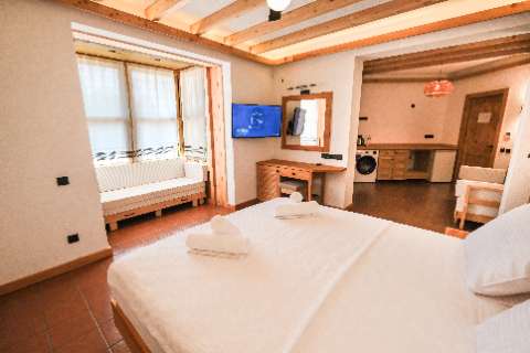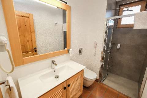 Our room merges the tranquility of nature with rustic and cedar wood comfort, offering a relaxing and modern stay. The spacious double bed or two single beds create an ideal retreat after a long day.