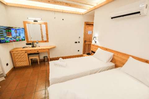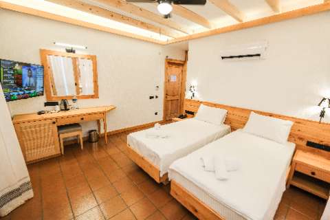 Odamız, doğanın huzurunu rustik ve sedir ağacı konforu ile birleştirerek rahatlatıcı ve modern bir konaklama deneyimi sunuyor. Geniş çift kişilik yatak veya iki tek kişilik yatak, uzun bir günün ardından dinlenmek için ideal bir alan sağlar.