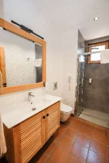Odamız, doğanın huzurunu rustik ve sedir ağacı konforu ile birleştirerek rahatlatıcı ve modern bir konaklama deneyimi sunuyor. Geniş çift kişilik yatak veya iki tek kişilik yatak, uzun bir günün ardından ideal bir dinlenme alanı oluşturur. Dış mekana açılan balkon, tazelik ve manzaranın keyfini çıkarabileceğiniz bir alan sunar. Ayrıca, sedir ağacından yapılmış cumba penceresi odanın genişliğini artırır ve panoramik manzaralar sağlar. Oda bir çalışma alanı, su ısıtıcısı, ferahlatıcı içecekler, elektrikli mini ocak ve çamaşır makinesi içermektedir. Doğal terracotta zemin hijyenik ve kolay temizlenebilir bir yüzey sağlarken, ahşap kirişli tavan tasarımı rustik bir çekicilik katmaktadır.